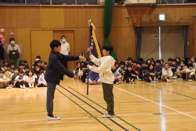 校旗の引き渡しも行いました。これからの森岡小学校を引っ張って行ってくれると思います。