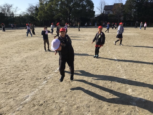 大放課に、1・6年生でペア遊びを行いました。運動場を広く使って、全員で鬼ごっこをしました!1年生の元気さに追いつけず、へとへとになっている6年生もいました。みんなで走って、とても楽しそうでした。