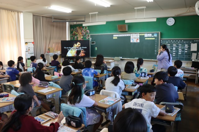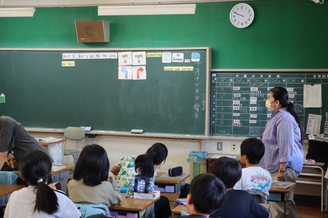 ALTと一緒に学習に取り組んでいます。最初はウォーミングアップで歌を歌っていました。その後道案内の練習を行いました。