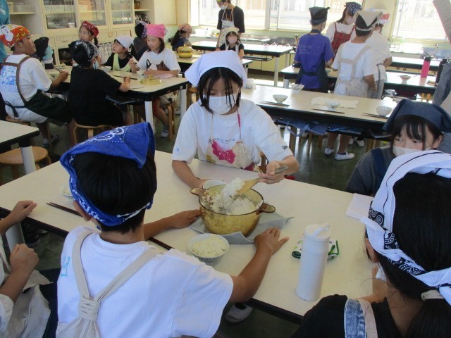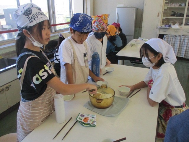 家庭 3時間目と4時間目に3組も調理実習を行いました。3組もすべてのグループでご飯の観察も出来て美味しく食べることができました。