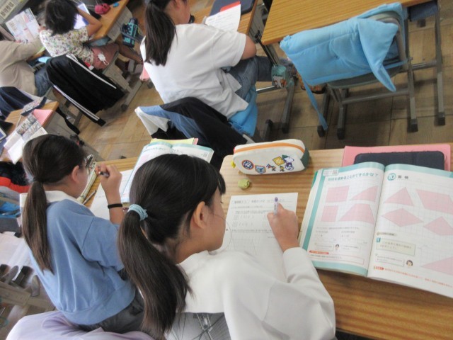 森スタ(森岡スタディ) 2学期の森スタは2教科合同で進めています。どちらの教科で学習するかは自分で決めています。1学期はコース別で教室を移動していましたが2学期は自分の席で学習をしています。1学期より集中して学習してる児童が多いです。