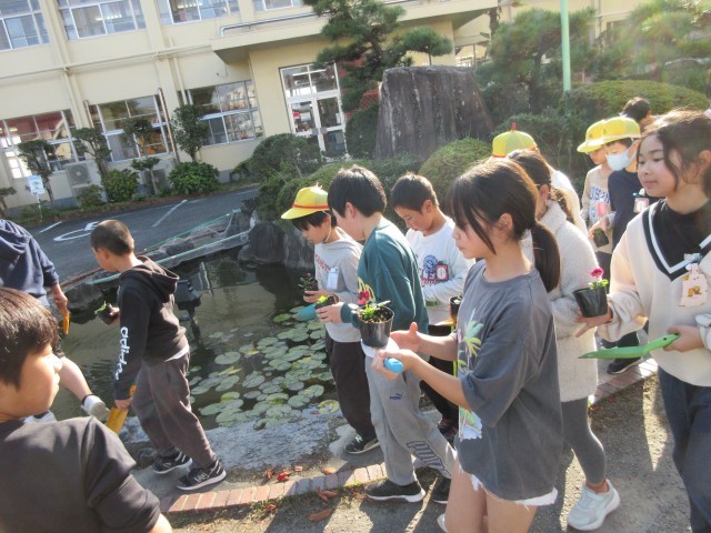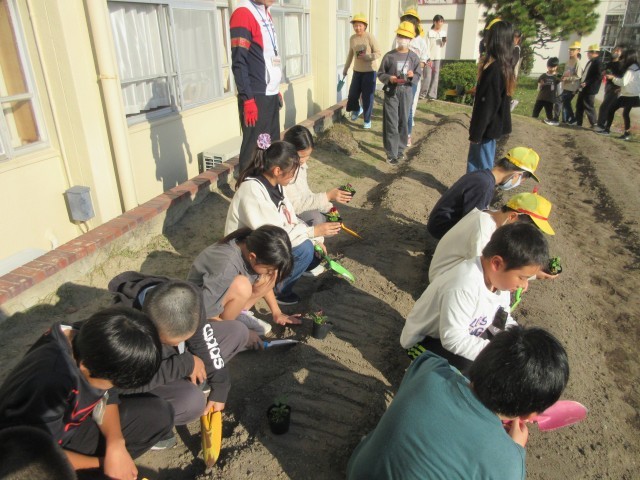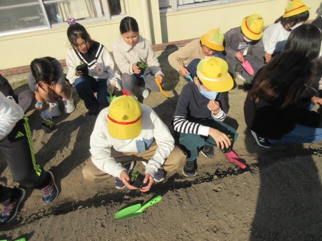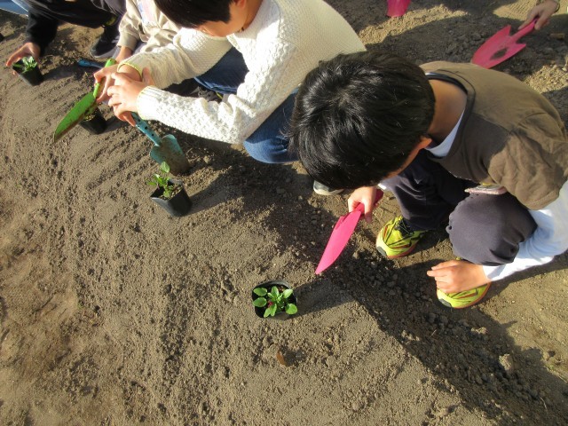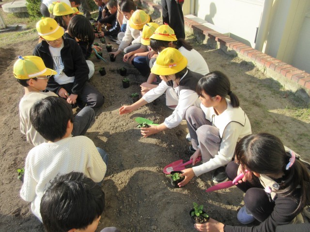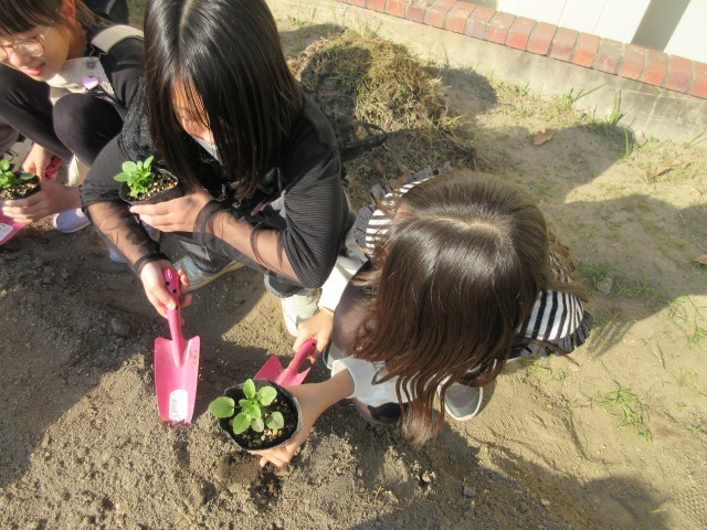 理科 卒業式のために一人一鉢、パンジーを植えました。