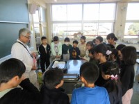 今日は、お醤油もの知り博士の出前講座を受けました。ホットプレートでお醤油を熱するととてもいい香りがします。「おせんべいの匂いだ」「みたらし団子だよ」「焼きとうもろこしだ」「五平餅」など、みんなの大好きな食べ物の名前がたくさん飛び出しました。お醤油の香りからスタートした授業はお醤油の作り方、お醤油の味比べへと進みました。もろみ、生醤油、火を加えた市販される醤油の3つを比べながらその違いを考えました。博士のお話を忘れないように、真剣にノートにメモをする姿が印象的でした。