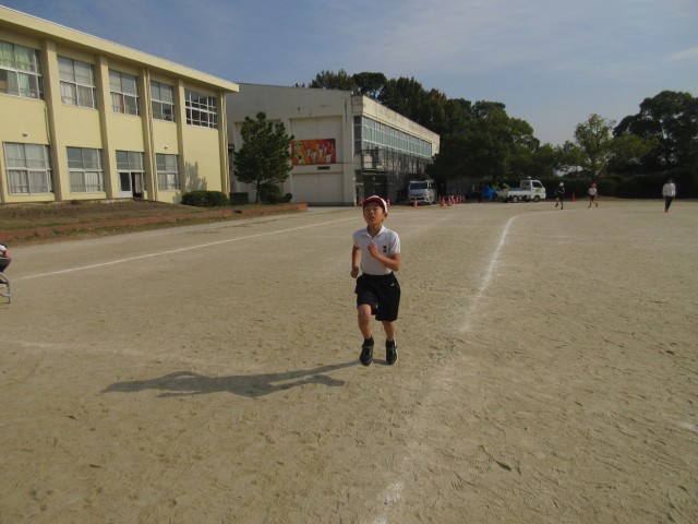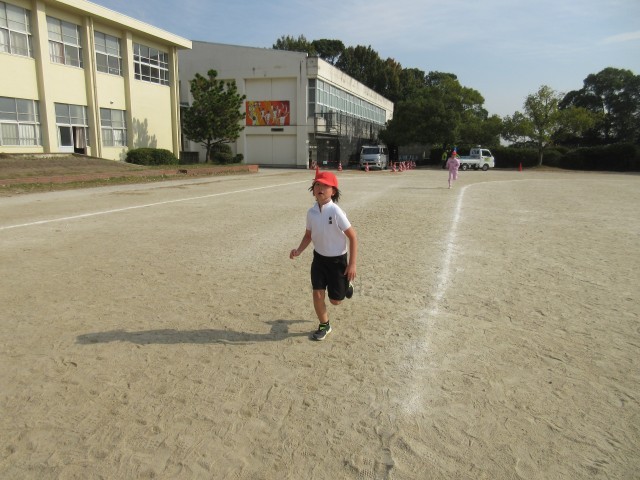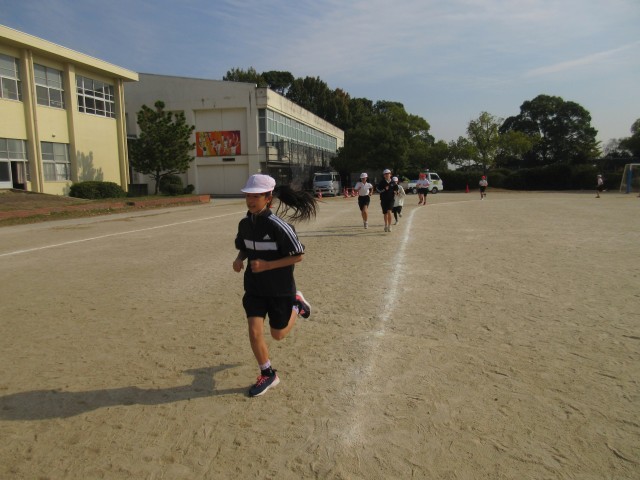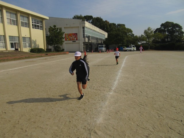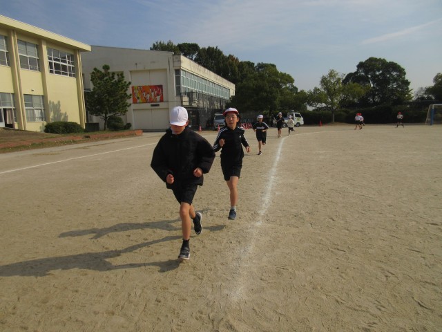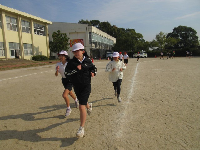 体育 持久走 一定の時間を走り続ける練習をしました。計測が楽しみです。