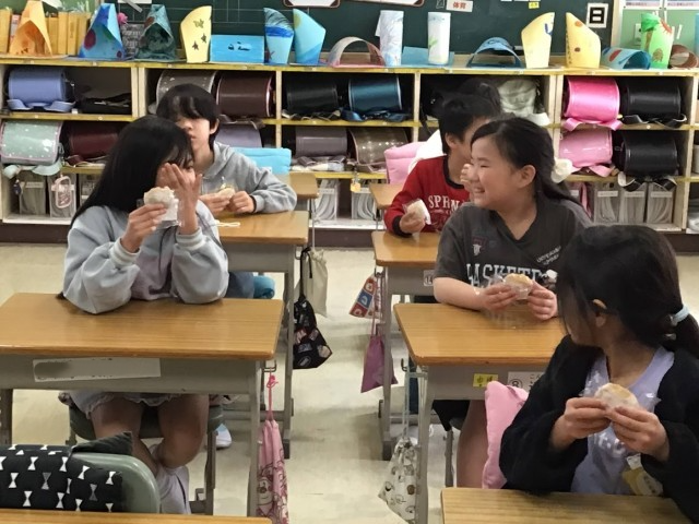 教科書の中の言葉が、自分たちの味覚とつながった瞬間、子どもたちの目はキラキラと輝いていました。写真からも、「ほっぺたが落ちる幸せ」が伝わるでしょうか?