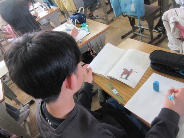 「帰り道」のお話の学習・・・感想を書いて、登場人物の気持ちについて考えました。さすが、6年生!ノートの書き方がじょうずです。