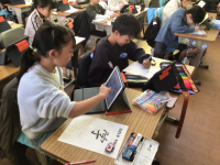 読書感想画を作成していました。どのような物語をもとに描いているのか伝わってきました。