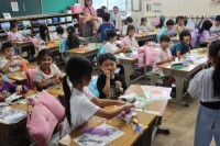 1年生の給食の時間に少しお邪魔しました。野菜が残っていたので、おかわりして食べている子がいました。向き合って楽しくお話しながら食べたあと、残り時間が少なくなると、席の向きを変えて食べることに集中していました。入学時に比べて、しっかり食べるようになってきましたね。