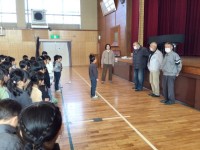 昔の遊びを体験していました。お手玉を上手に操り、だるま落としやけん玉、メンコなど様々な体験をしていました。