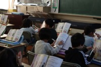 見付けた草花や生き物は、絵に描いて色塗りをしました。