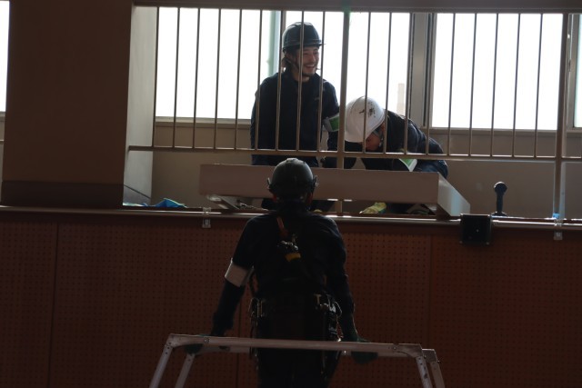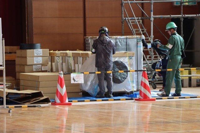 本日より本格的に始まりました。資材が体育館内に置かれています。今週は半面を利用して体育を行うことができますが、来週からは一旦全面利用禁止となります。