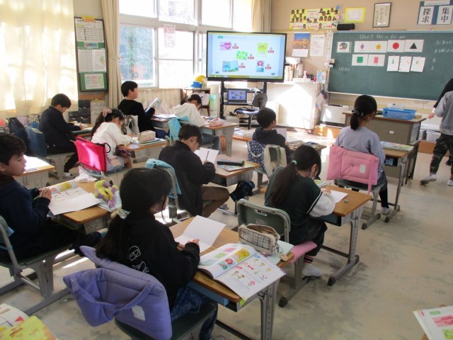 中:3年生の外国語活動の授業では、カード作りをしました。カード作りを通して、クリスマスやお正月が楽しみになってきました。