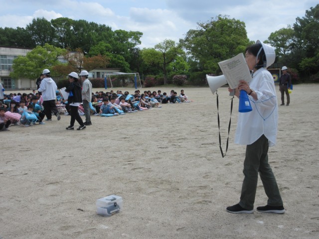 地震避難訓練を行いました。「おはしも」・・・「おさない」「はしらない」「しゃべらない」「もどらない」の約束を守って、避難場所の運動場へ避難することができました。「命」は、一人一つです。自分の「命」を守るための行動ができるようにしていきましょう。毎年、訓練をしていますが、繰り返し繰り返し行うことも大切です。今年も、いろいろな訓練を行っていきます。