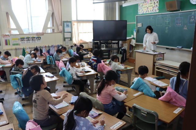 漢字の学習が進んでいます。「中」「町」「出」「森」「入る」読める漢字が増えています。