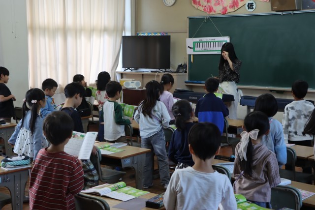 森のくまさんが聞こえてきました。大きな声で歌うところと小さな声で歌うところを意識していました。