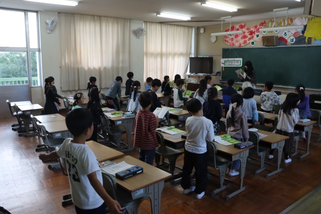 年間35時間の外国語活動の時間が3年生にはあります。それ以外にALTの授業を設定しています。好きなスポーツについてゲームをしながら学んでいました。