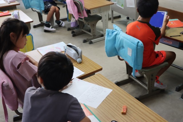 生活の授業では、ウェルビーイングカードを使って東浦町の「すてき」を見つけるためのインタビューを考えました。友達と意見を交流させながら、友達の「すてき」を見つけていました。インタビュー本番は明日(17日)です。