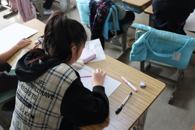 がまくん、かえるくん、かたつむりくんに対してお手紙を書いていました。学習のまとめですね。