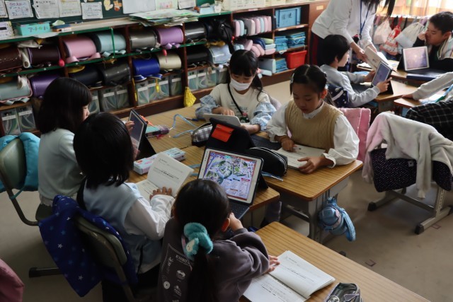校外学習に行く場所についてガイドアップやタブレット端末を使って調べていました。