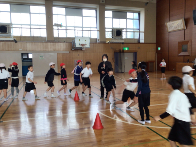 2-3・・・体育でしっぽとりをしています。今週は、王様しっぽとりと題して、王様のしっぽを取ると、得点が多く入るというルールで楽しみました。王様を守るために取り囲んだり、取ったしっぽを足の速い子に渡したり、チームごとにいろいろな作戦があり見ていて楽しかったです。