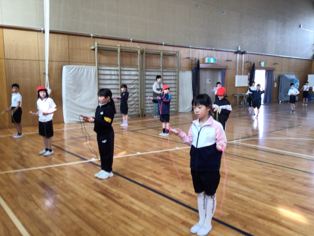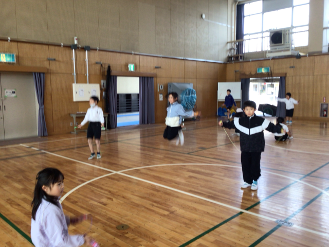 2年生は持久とびを1分半、あやとび(前)50回以上を目標に練習に取り組んできました。おおなわとびは、各クラスそれぞれ目標を決めて取り組みました。