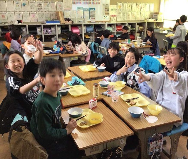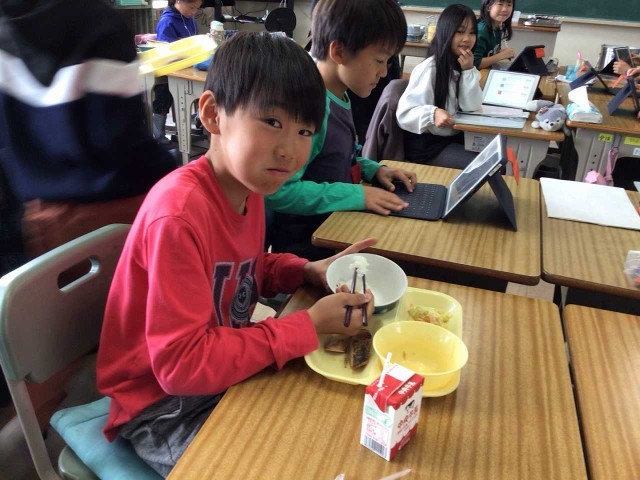 クラスの仲間たちと今日もおいしく給食を食べています。