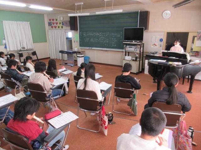 歌のテストを行いました。グループできれいな歌声を響かせていました。