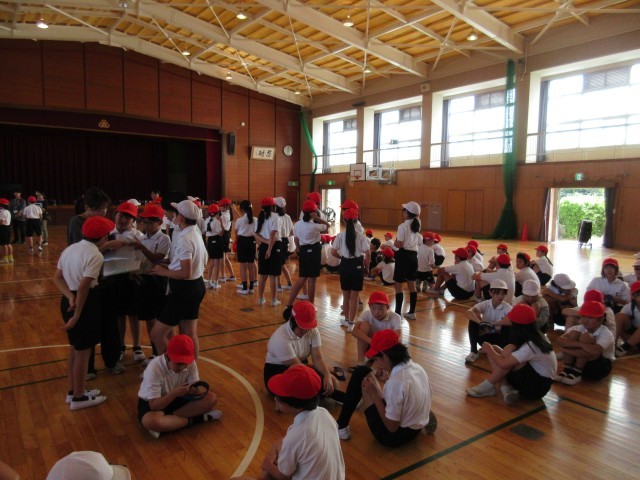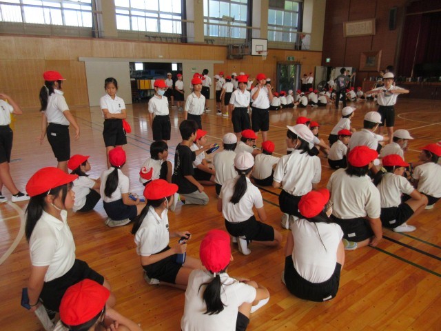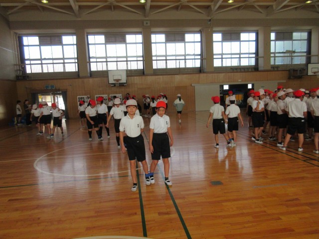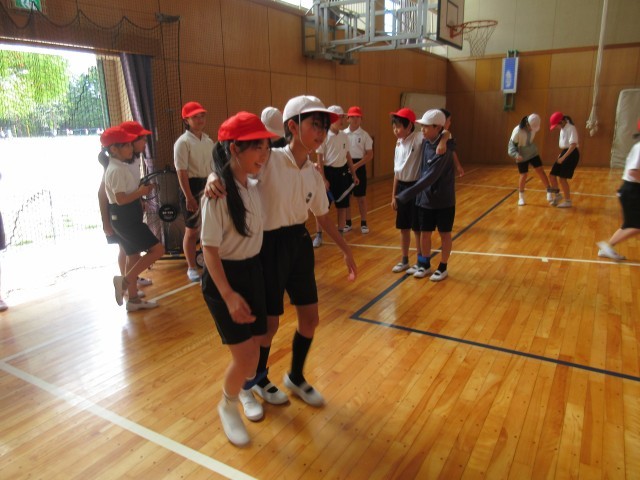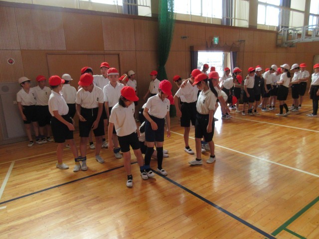 6年生と5年生の合同運動会練習 合同種目の練習をしました。6年生のリーダーを中心に頑張りました。
