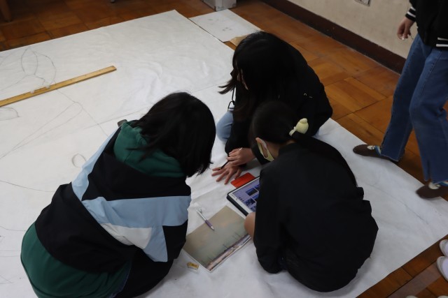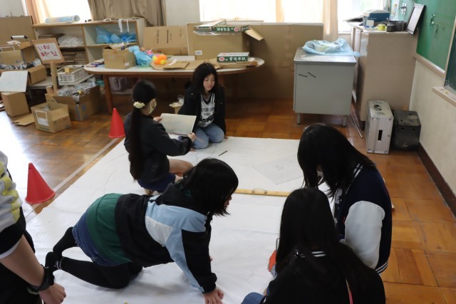 森岡地区コミュニティより依頼を受け、今年度は6年生が大凧の絵を描いています。下書きを進め、12月には色を付けていきます。全員参加で素敵な大凧を作る予定です。