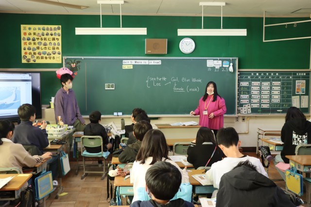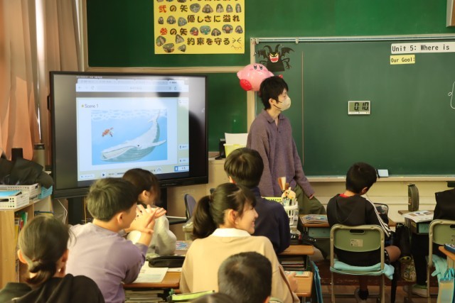 Unit5「Where is it from?」の単元の学習をしています。「sea turtle」「whale」「female」「male」新しい単語もしっかり学んでいきます。