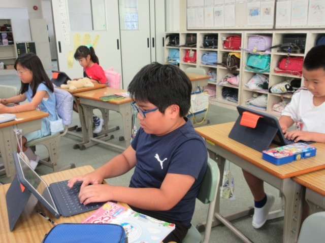 9月30日(火)3年生:国語 公開日 2025/09/30 更新日 2025/09/30 うのさとニュース 漢字のテスト・・・できたら、先生に〇付けをしてもらって、合格!!!終わったら、タイピングの練習です。