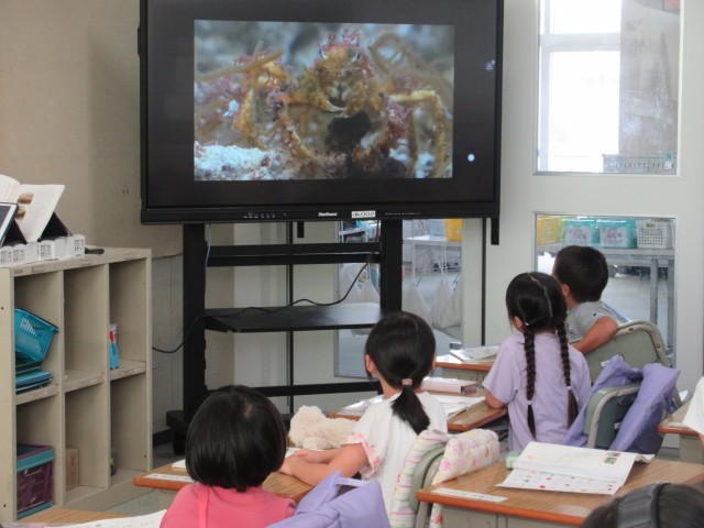 9月30日(火)1年生:国語 公開日 2025/09/30 更新日 2025/09/30 うのさとニュース 「うみのかくれんぼ」・・・いきものの映像を見ました。「はまぐり」「たこ」「もくずしょい」のかくれんぼ、どんなかくれんぼかな。