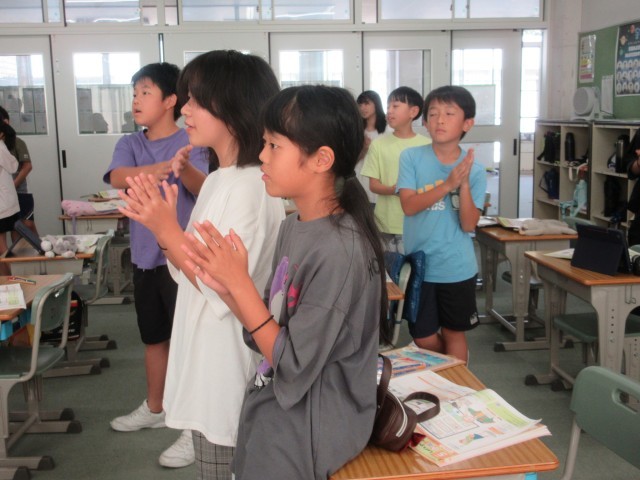 楽しい英語の歌を歌いました。ペンギンダンス? 歌と手拍子や動きで、楽しい雰囲気でした。