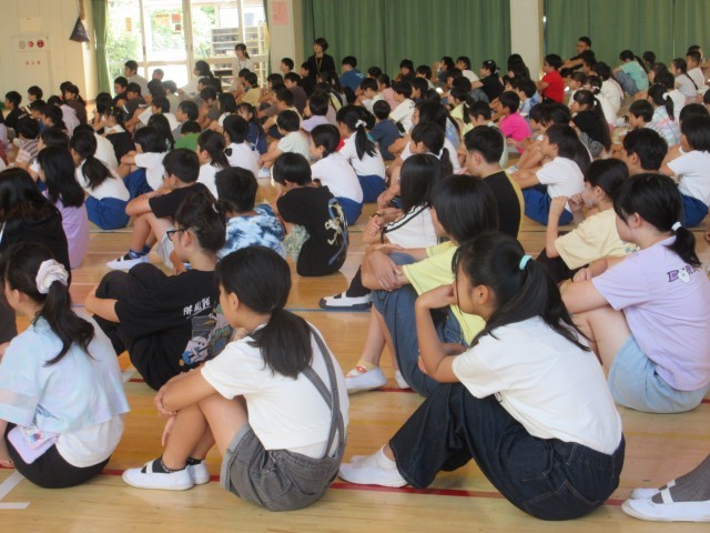 10月7日(火)朝会 公開日 2025/10/07 更新日 2025/10/07 うのさとニュース 全員が体育館に集まっての朝会。暑さもやわらぎ、体育館の温度も低くなったので、久しぶりの朝会です。後期児童会役員の任命、10月の「神無月(かんなづき・かみなしづき)」の話、東仙台の公園工事についての注意がありました。