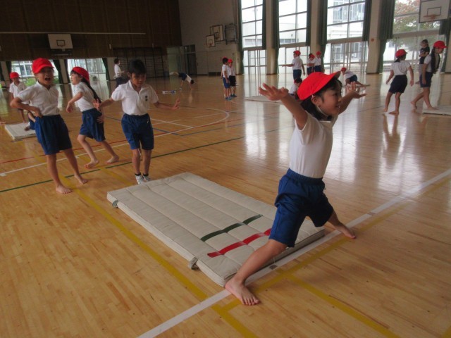 10月15日(水)3年生:体育 公開日 2025/10/15 更新日 2025/10/15 うのさとニュース マット運動・・・前転、後転、開脚前転、開脚後転などの練習をしました。開脚前転は、手を伸ばして広げて着地すると、いい感じになるね。