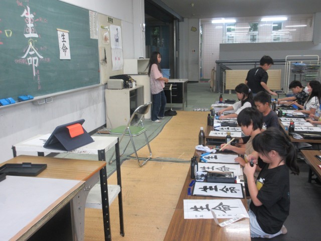 10月16日(木)4年生:書写 公開日 2025/10/16 更新日 2025/10/16 うのさとニュース 書写コンクールに取り組んでいます。今は練習です。「生命」という字のバランス、大きさ、はらいなど、気をつけることに意識しています。