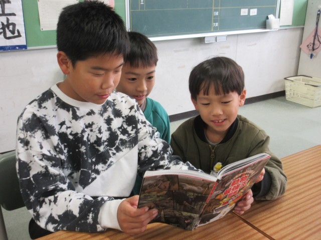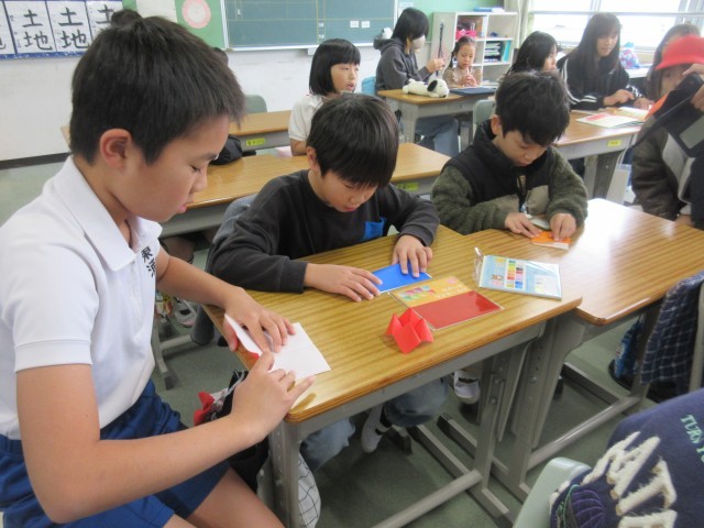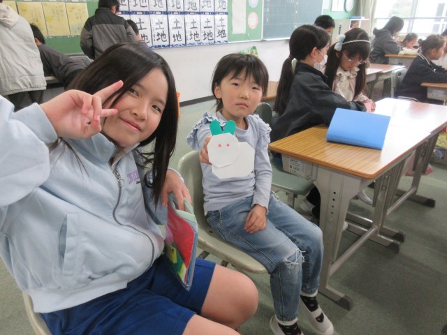 今週は、「にこにこ週間」です。今日は、読書か折紙を選んで、ペアで楽しい時間を過ごしました。読書も折紙も、4~6年生がリーダーシップを発揮していました。一人で読書も折紙もできますが、ペアで行うことで相手を意識して話す力や思いやりの心が育ちます。楽しさも2倍、3倍・・・になるような気がします。気温があまり上がらない日でしたが、ペア活動で心が温まる日になりました。