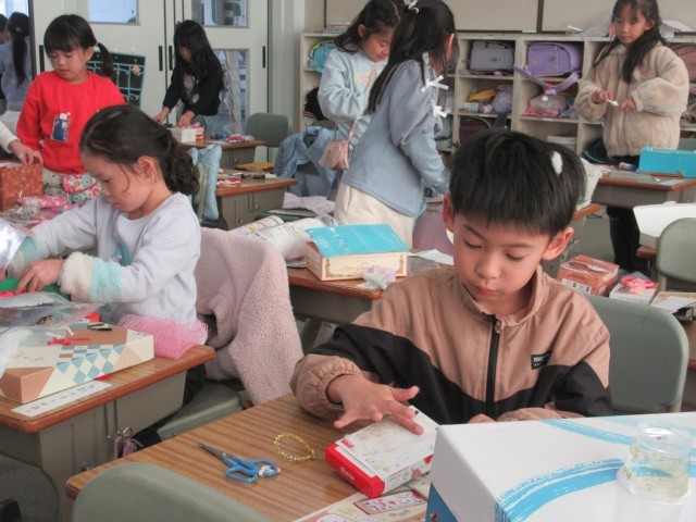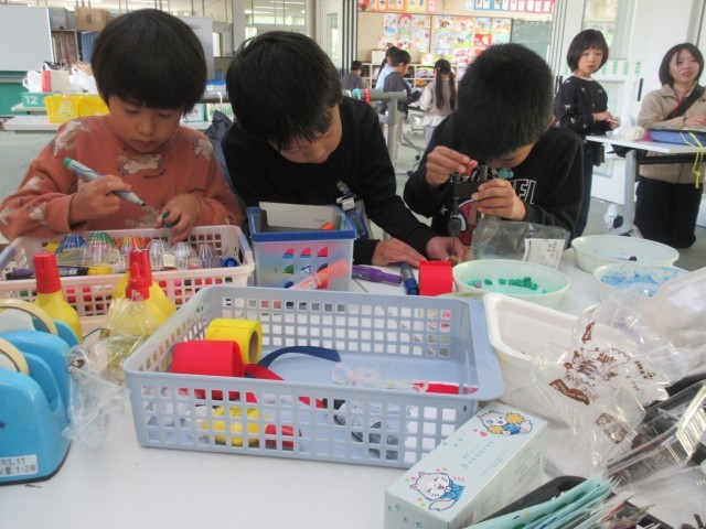 「リースづくり」と「たいせつボックス」・・・みんな、楽しそうに作っていました。材料がたくさんあると、アイデアがいっぱい出てきますね。