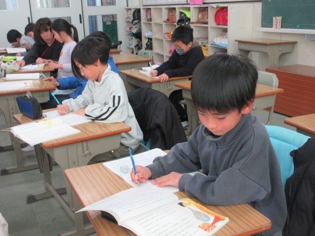 「みきのたからもの」・・・どんなお話かな? 文章を見て、ノートに書き写す活動をしていました。「、」「。」に気をつけながら、書いていました。