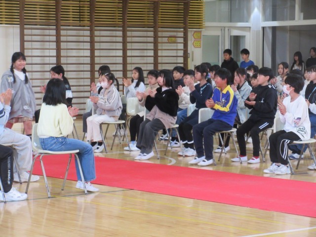 3月13日(金)4~6年生:リハーサル 公開日 2026/03/13 更新日 2026/03/13 うのさとニュース 卒業式のリハーサルをしました。4年生から6年生までが参加し、卒業式をつくりあげていきます。卒業生の6年生、在校生の4年生と5年生・・・3月19日が卒業式です。体調には気をつけて、当日を迎えられるようにしましょう。