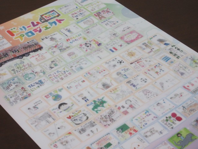 昨年の7月に、町内の小学生を対象に「【ドリームプロジェクト】あなたの夢をトラックに掲載してみませんか?」の募集がありました。3月8日に完成お披露目式が行われましたが、「ペイントトラック」を所有する物流会社から、クリアファイルが届きました。本校で応募した児童には、クリアファイルを配付しました。どこかで、ペイントトラックを見かける機会があると思います。