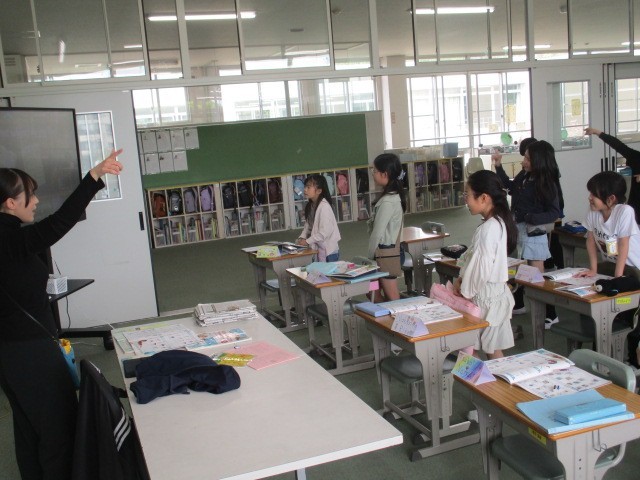 4月21日(火)授業風景 公開日 2026/04/21 更新日 2026/04/21 うのさとニュース 5年外語語の授業の様子です。「何の教科が好き?」について学習しています。英語の歌も楽しく振り付けをして歌っていました。