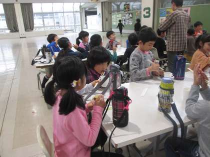 2年生が,学校の畑で収穫したサツマイモを調理しておいもパーティを開きました。