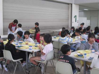 ホールでの給食の様子です。