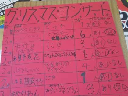 11月14日(水)3 午前中の様子3 公開日 2018/11/14 更新日 2018/11/14 うのさとニュース 3年生1組は運動場で光り集めの実験をして教室へ帰る途中でした。2組は音楽室でリコーダーの練習をしていました。クリスマスコンサートの出場募集があります。