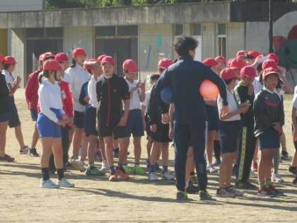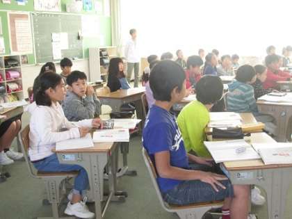 4年1組は理科室で理科の実験のまとめをしていました。4年2組は教室で勉強していました。5年生は合同で体育をしていました。
