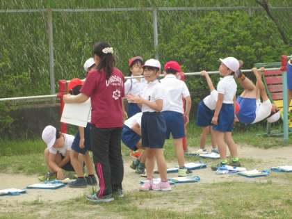 低学年の授業の様子です。3年生が鉄棒の練習をしていました。