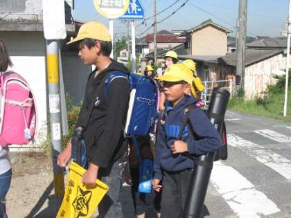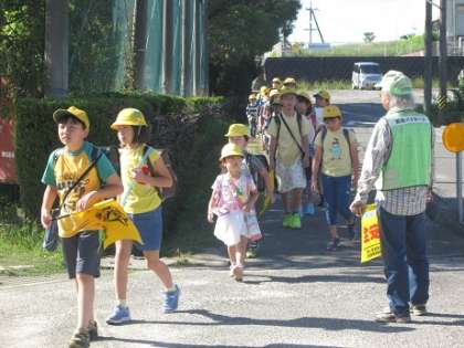 あいさつ運動を行いました。卯ノ里見守ろう隊の方にも参加していただきました。
