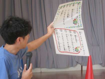 おだいちゃんのぬいぐるみが学校にいただけたこと。「話すの約束 あいうえお」「聞くの約束 かきくけこ」の連絡を聞きました。