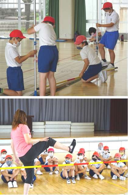 最初は踏み切る方の足がはっきりせず,戸惑っている子もいましたが,慣れてくるとみんな楽しそうにバーを跳び越えていました。